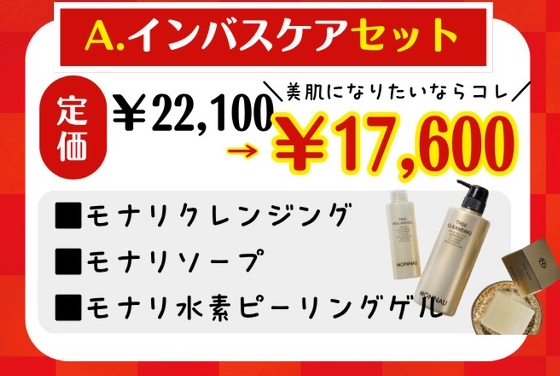セール ぱうざ福袋2026《Aインバスケアセット》¥22,100 元の価格は ¥22,100 でした。¥17,600現在の価格は ¥17,600 です。 (税込) ★新春ぱうざ福袋★ こちらは ・モナリクレンジング ・モナリソープ ・モナリ水素ピール 3点セットです ぱうざ福袋2026《Aインバスケアセット》個 お買い物カゴに追加 カテゴリー: 2026年福袋, MONNALI, GOLD SERIES, オススメ商品 説明 説明 初めてのモナリ美肌スキンケアデビューはコレ! 「お肌を変えたい」ならAセット。 優しく落とすことで、与える効果も100%! 本来の美しい素肌を呼び覚まします。 詳しくは《画像》や《個別商品ページ》をご覧ください♪ ・モナリクレンジング ・モナリソープ ・モナリ水素ピール 関連商品 GOLD SERIES TR50 CLEANSING ¥11,000 (税込) お買い物カゴに追加 GOLD SERIES TR50 SOAP ¥3,300 (税込) お買い物カゴに追加 BLACK SERIES スカルプミスト CLEAN ¥6,050 (税込) お買い物カゴに追加 BLACK SERIES カバートリートメント PROTECT ¥4,400 (税込) お買い物カゴに追加 インバスケアセット ¥22,100 (税込) お買い物カゴに追加 セール ぱうざ福袋2026《B若返りセット》 ¥29,150 元の価格は ¥29,150 でした。¥23,500現在の価格は ¥23,500 です。 (税込) お買い物カゴに追加